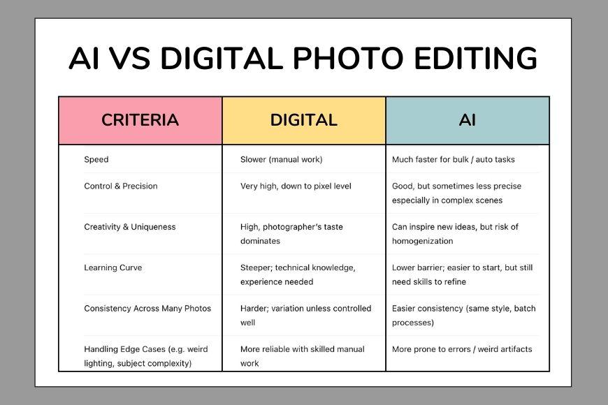 The rise of artificial intelligence has transformed how we edit photos. Tasks that once required hours of effort can now be completed in seconds. At the same time, traditional manual editing continues to offer unmatched creative control.